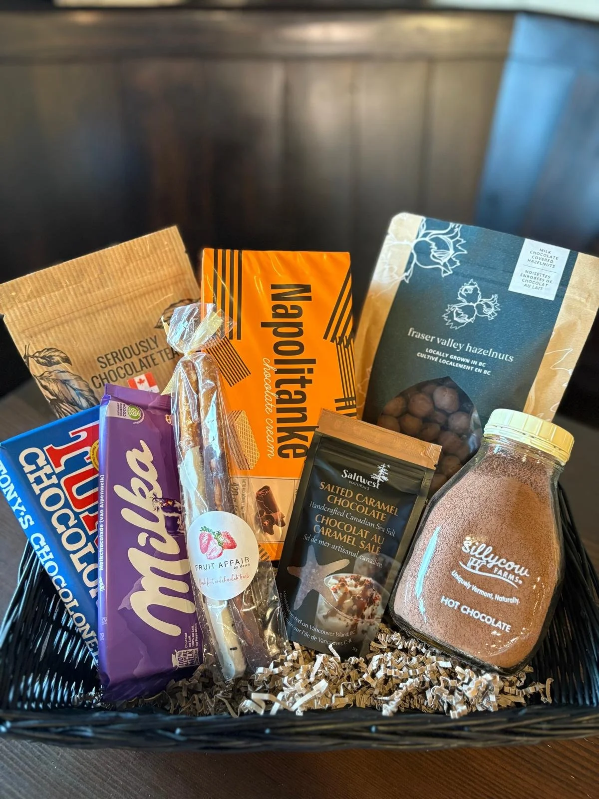 For those who love curling up with a hot coffee, tea or hot chocolate in that perfect oversized mug! This basket is filled with local and imported favourites!