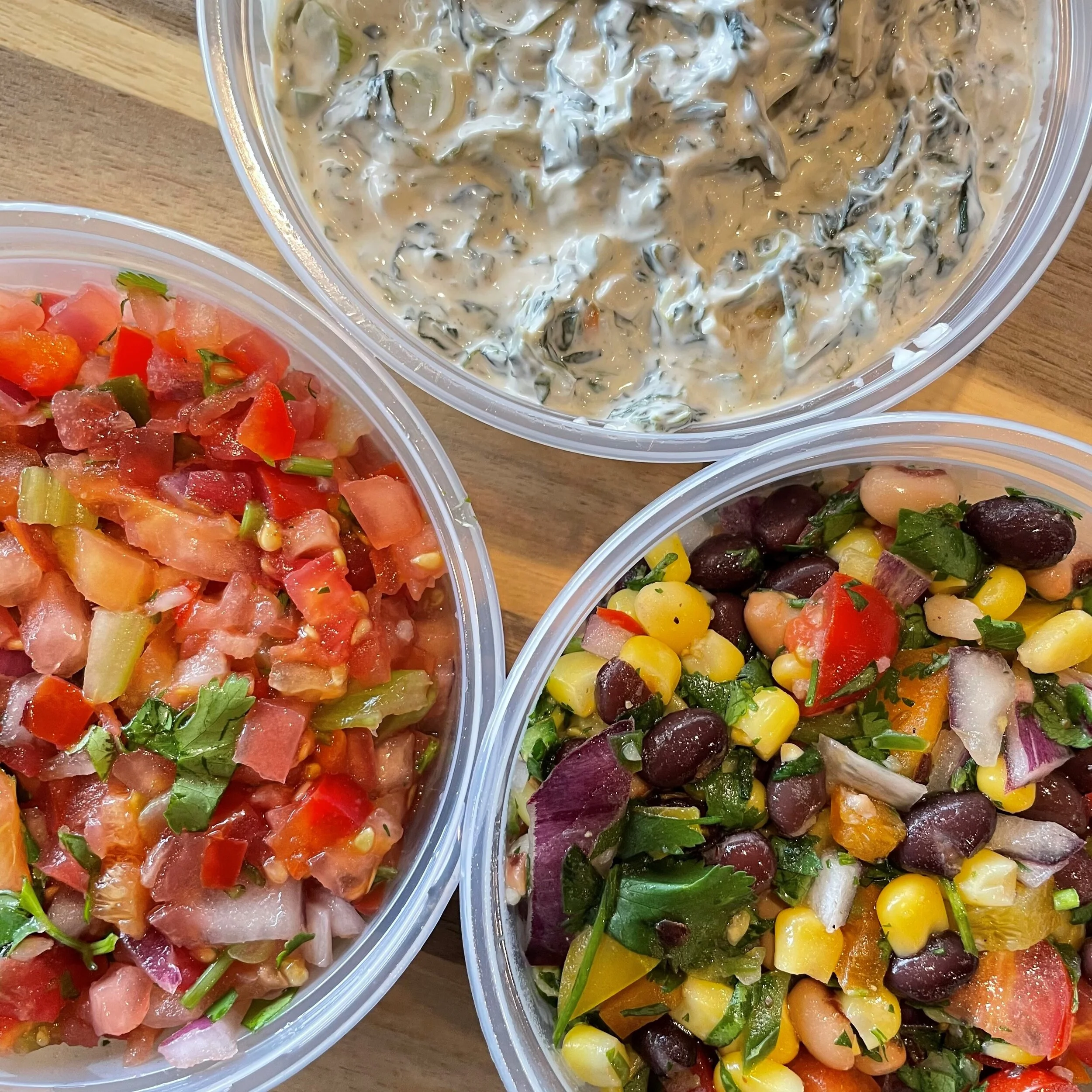 Fresh Salsa, Spinach Dip, Cowboy Caviar